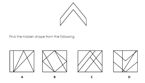 The given shape is hidden in the figure at option C. The shape starts from the bottom left and right corners and ends up at the top middle of the figure. Â